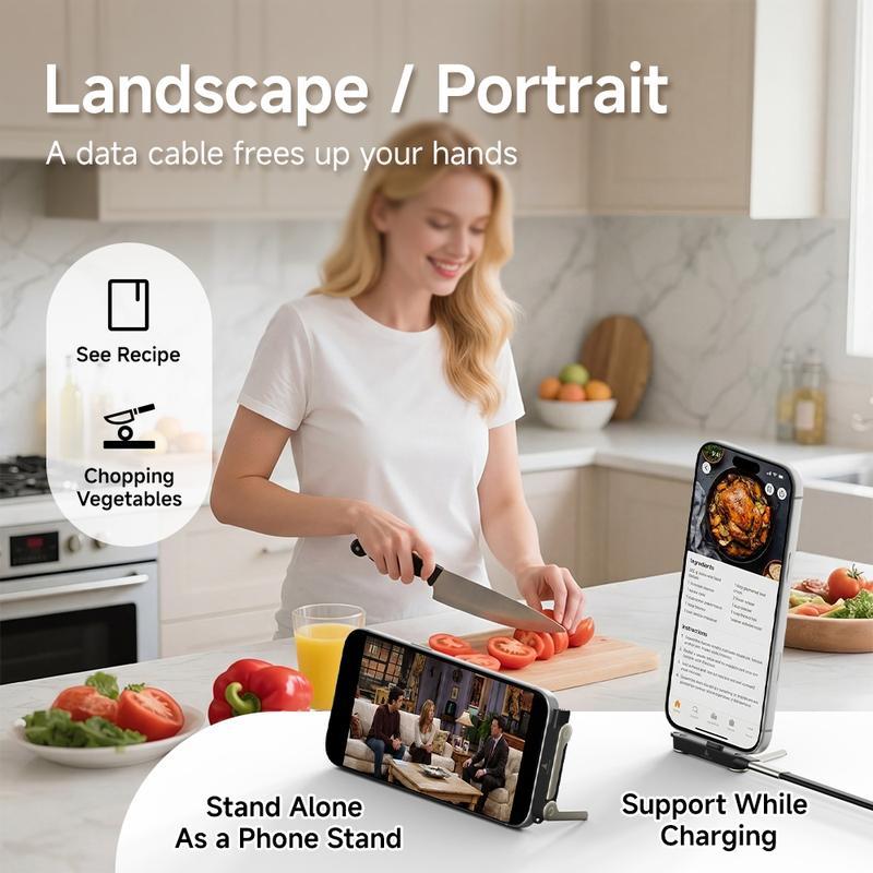 This 2-in-1 USB-C cable delivers ultra-fast 240W charging while doubling as a foldable phone stand, making it perfect for charging, streaming, gaming, or video calls.