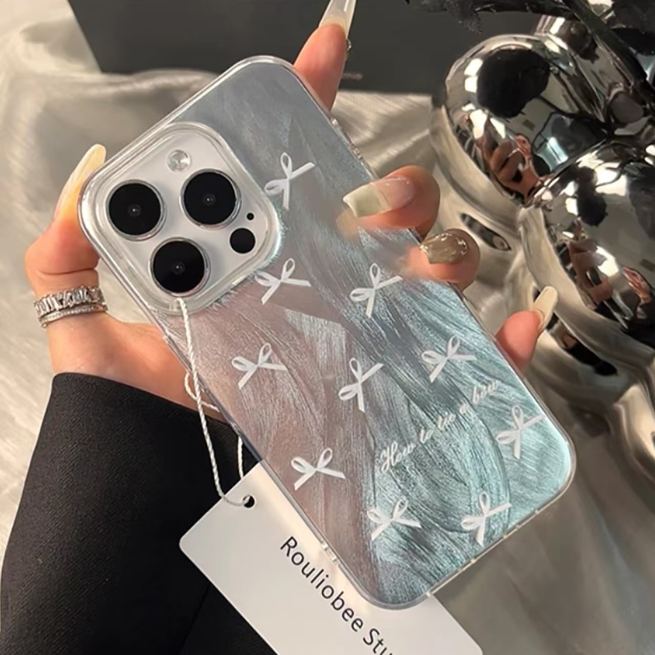 Meticulously crafted from premium electroplated materials, our case boasts an elegant silhouette that exudes timeless style and a slender grip, perfect for any occasion. The gradient texture adds an extra layer of sophistication to this chic design.